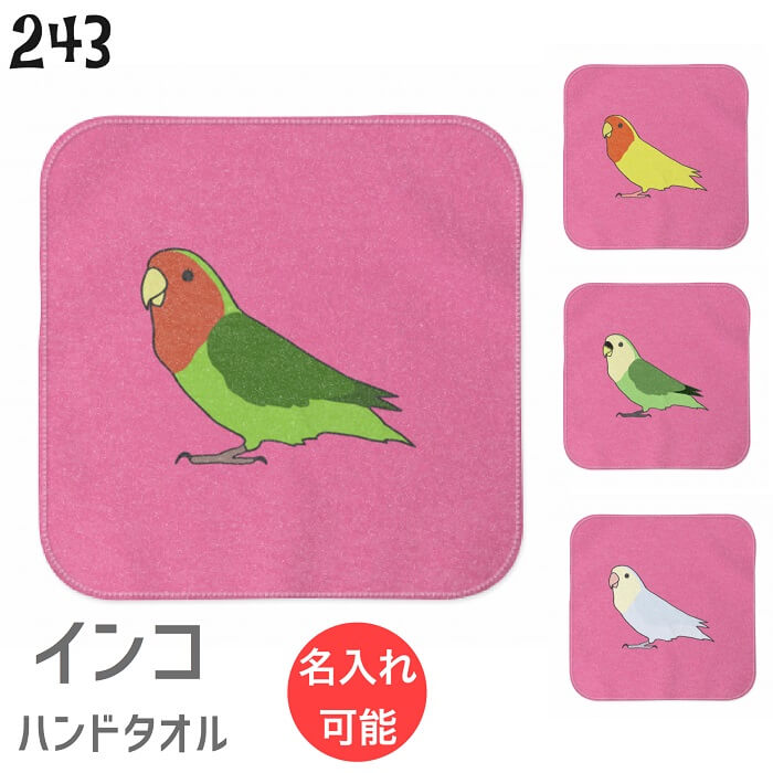 インコ ハンドタオル タオルハンカチ 横向きコザクラ ハンカチ 名入れ 記念品 アニバーサリー 入学祝い 還暦 卒業祝 誕生日 クリスマス 小鳥 鳥 鳥好き 雑貨 かわいい グッズ プレゼント ギフト セキセイインコ コザクラインコ オカメインコ